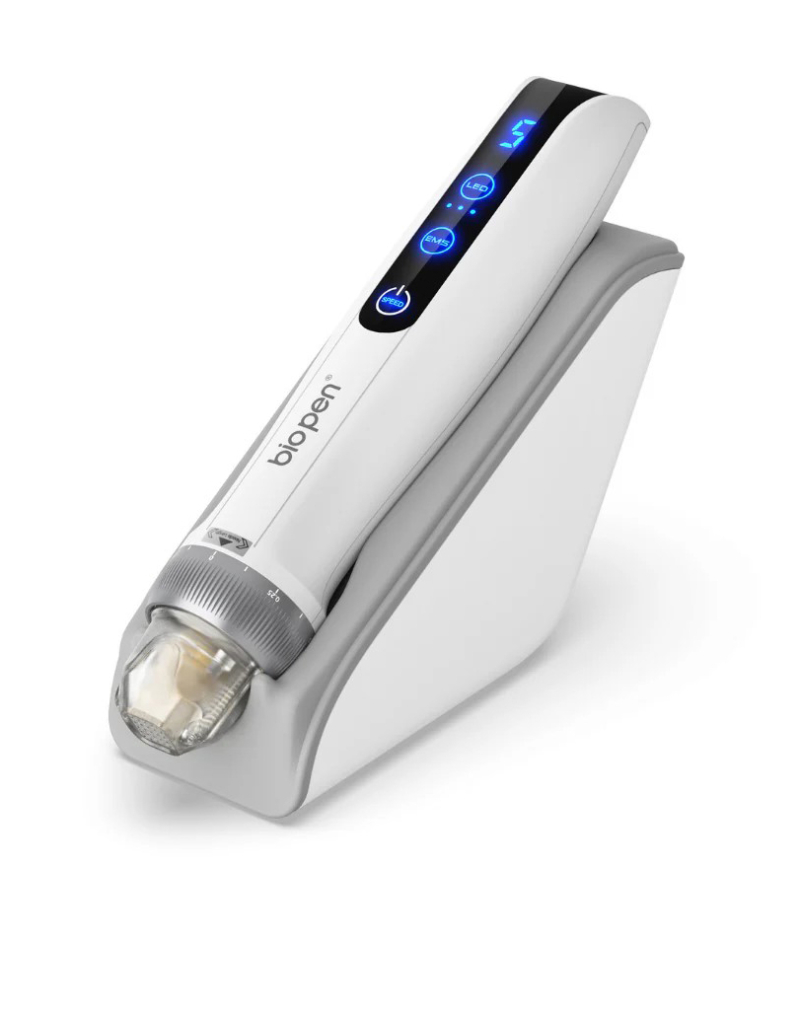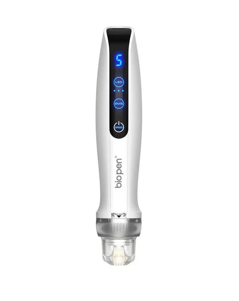 Bio Pen Q2 Microneedling Pen, an advanced microneedling pen that seamlessly combines three powerful beauty technologies: Microneedling, EMS Electroporation, and LED light therapy.