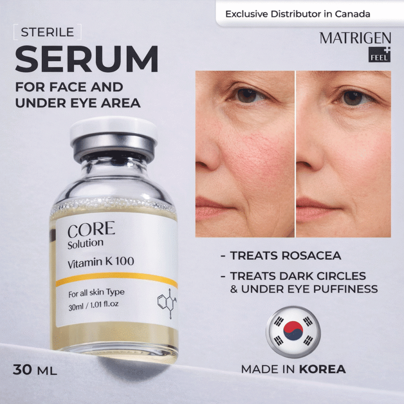 Matrigen Core Solution Vitamin K professional Microneedling serum formulated to help improve uneven skin tone, reduce the appearance of dark pigmentation, and support clearer, brighter-looking skin with conditioning care. Not for injection.