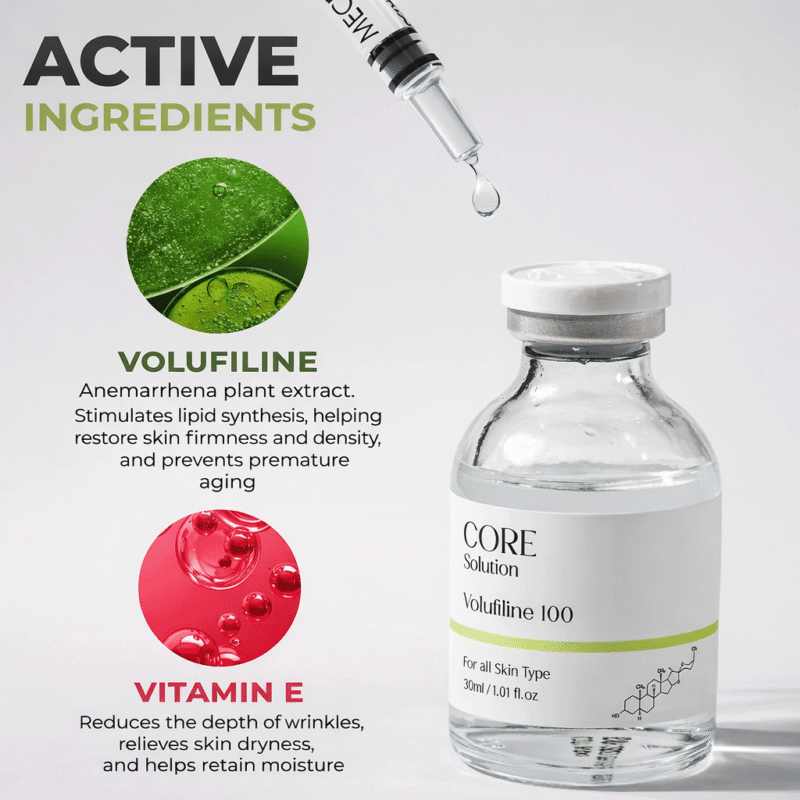 Matrigen Core Solution Volufiline professional Microneedling serum formulated to support visible skin volume, improve elasticity, and smooth the look of fine lines while nourishing and enhancing overall skin firmness.