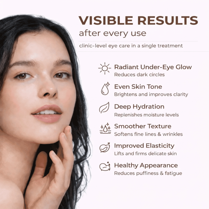 KEY RESULTS: Reduced puffiness, smoother fine lines, improved hydration, and brighter under-eye appearance.