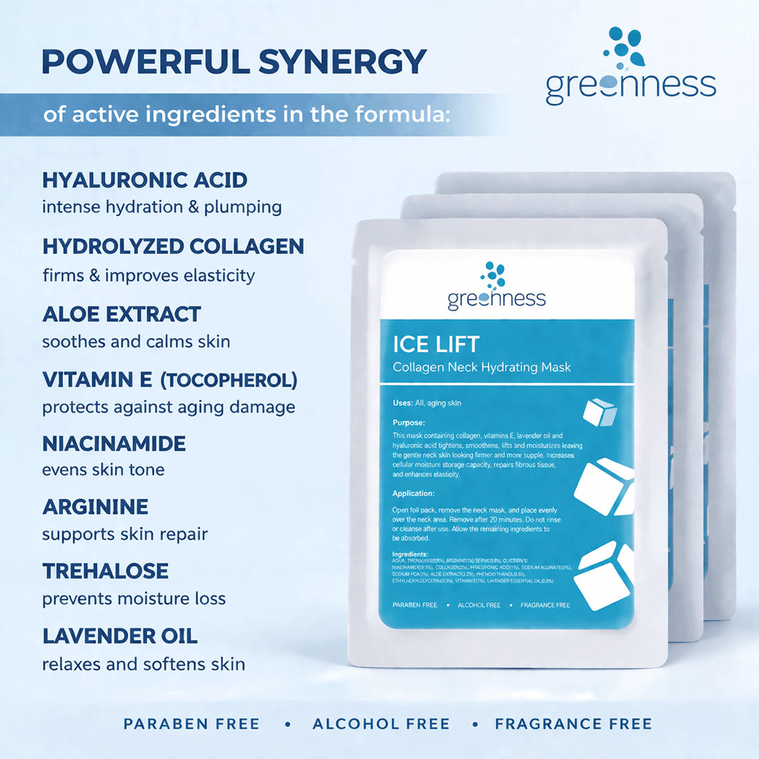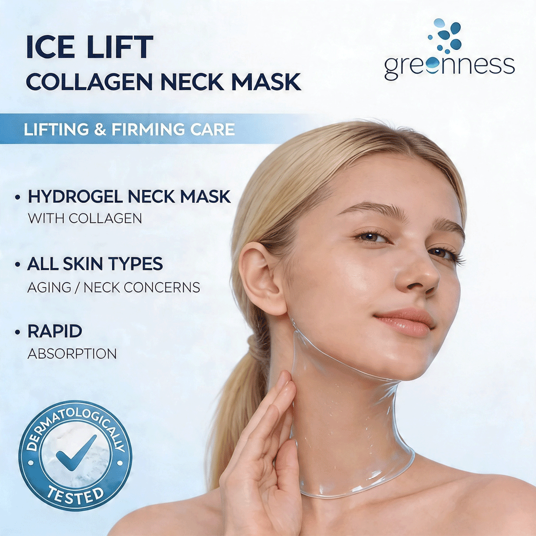Ice Lift Hydrating Collagen Neck Mask professional neck treatment formulated to firm, lift, and smooth delicate neck skin while delivering deep hydration and improving elasticity for a tighter, more youthful-looking appearance.
