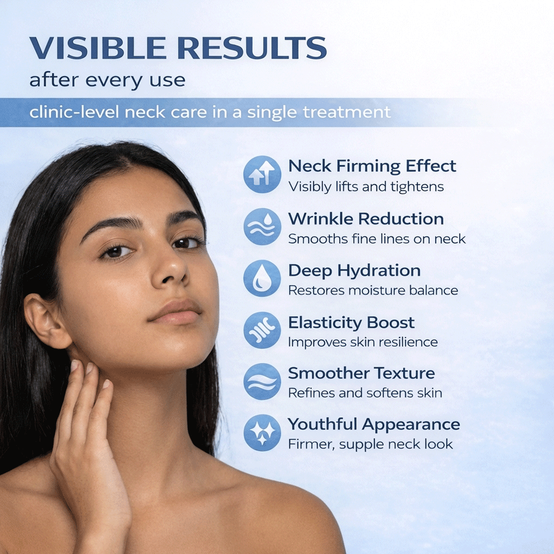 KEY RESULTS: Firmer neck skin, reduced fine lines, improved elasticity, and smoother texture.