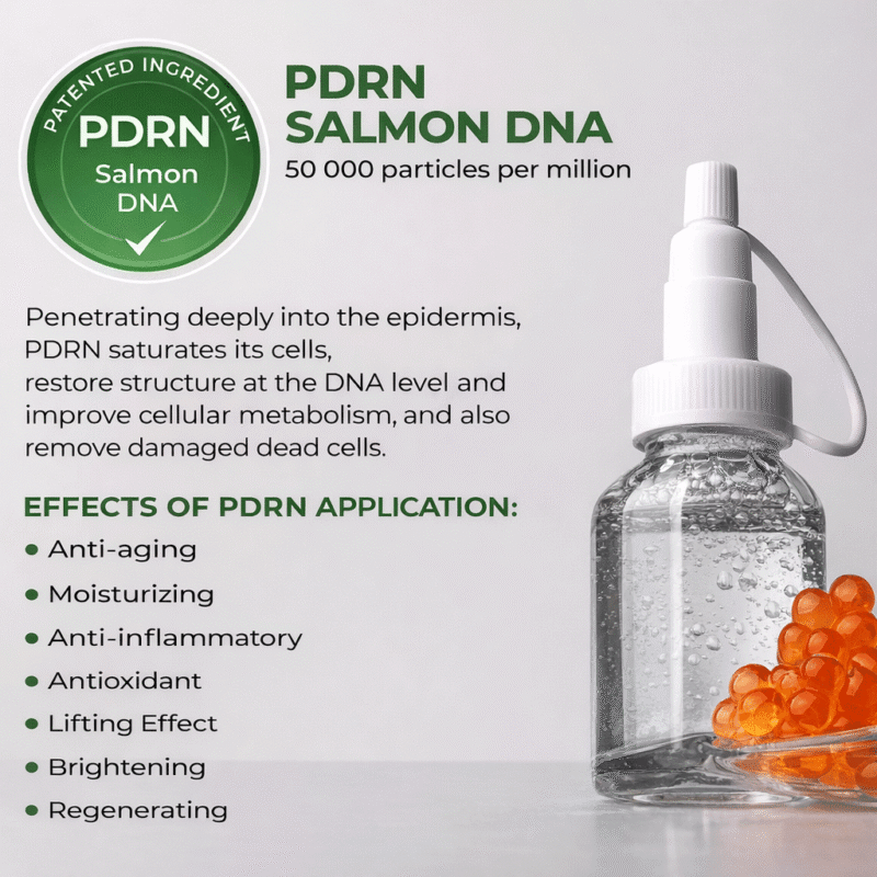 PDRN (Sodium DNA 500ppm) – Supports skin regeneration and helps improve elasticity by stimulating collagen activity.