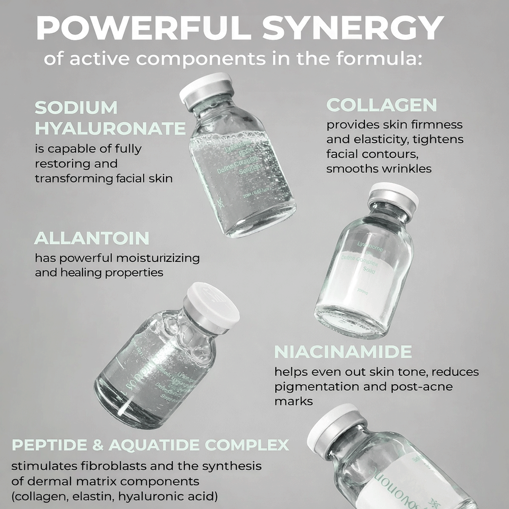 FORMULATION TYPE: Two-step system – liquid solution combined with freeze-dried powder to preserve ingredient stability and potency.