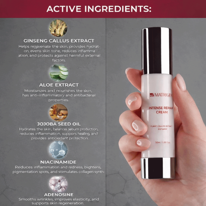 Matrigen Intense Repair Cream professional recovery cream formulated to deeply nourish, strengthen the skin barrier, and support regeneration for dry, weakened, and stressed skin.