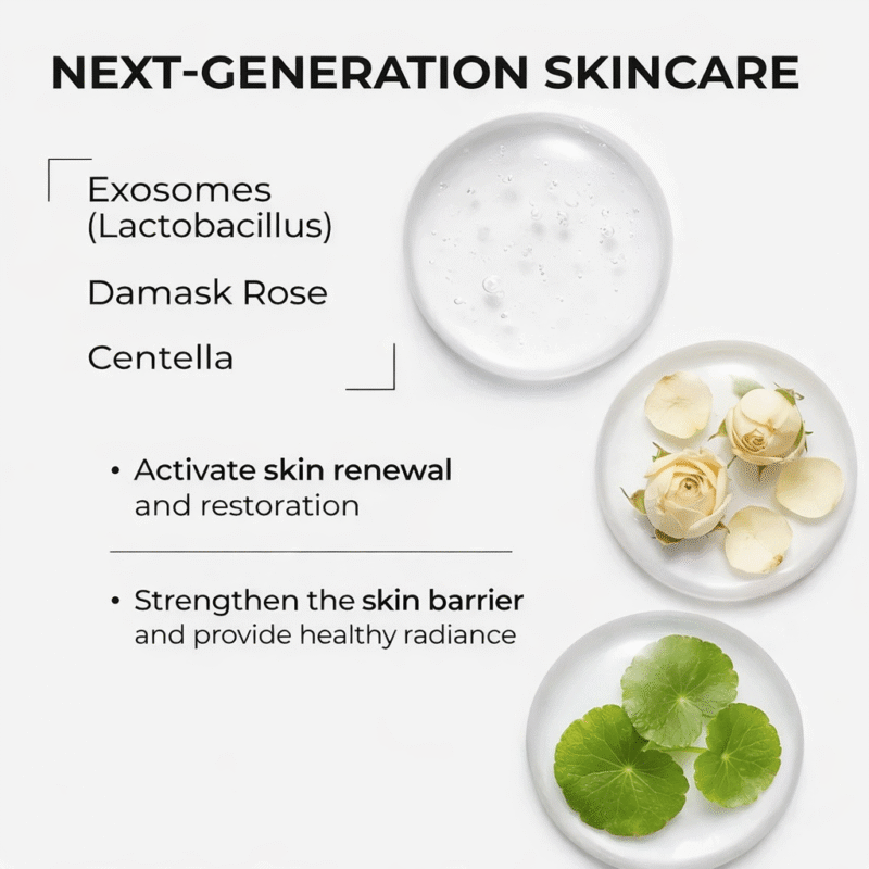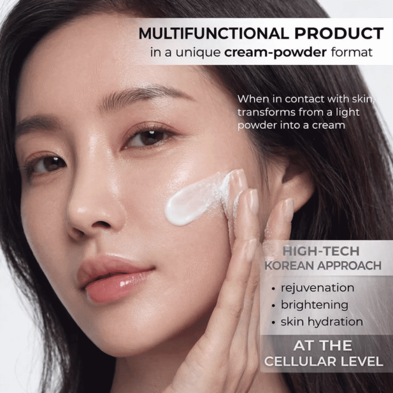 This innovative powder-to-cream formula activates just before use, transforming fine powder particles into a smooth cream that adheres closely to the skin. Exosome-enriched Centella Asiatica vesicles support skin repair and barrier strength, while Pro-Xylane stimulates collagen and glycosaminoglycan synthesis to improve firmness, elasticity, and hydration. Botanical extracts help calm irritation, enhance radiance, and maintain a vibrant, moisturized complexion without stickiness.