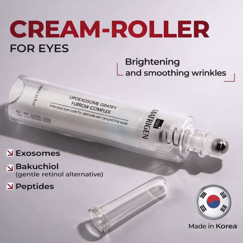 This spot treatment uses a metal roller applicator to evenly distribute active ingredients to delicate areas. Bioactive exosomes, peptides, and botanical extracts help support skin elasticity, smooth fine lines, improve hydration, and reinforce the skin barrier for a firmer, refreshed appearance.