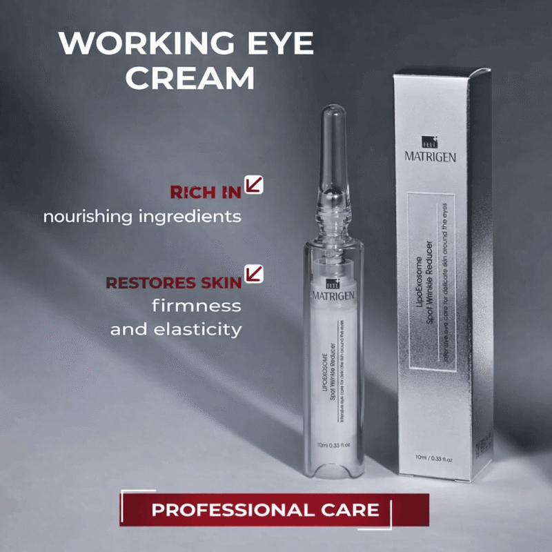 Matrigen LipoExosome Spot Wrinkle Reducer professional targeted treatment formulated with bioactive exosomes, peptides, and nourishing actives to help reduce the appearance of wrinkles, improve elasticity, deeply hydrate, and firm delicate areas such as around the eyes.
