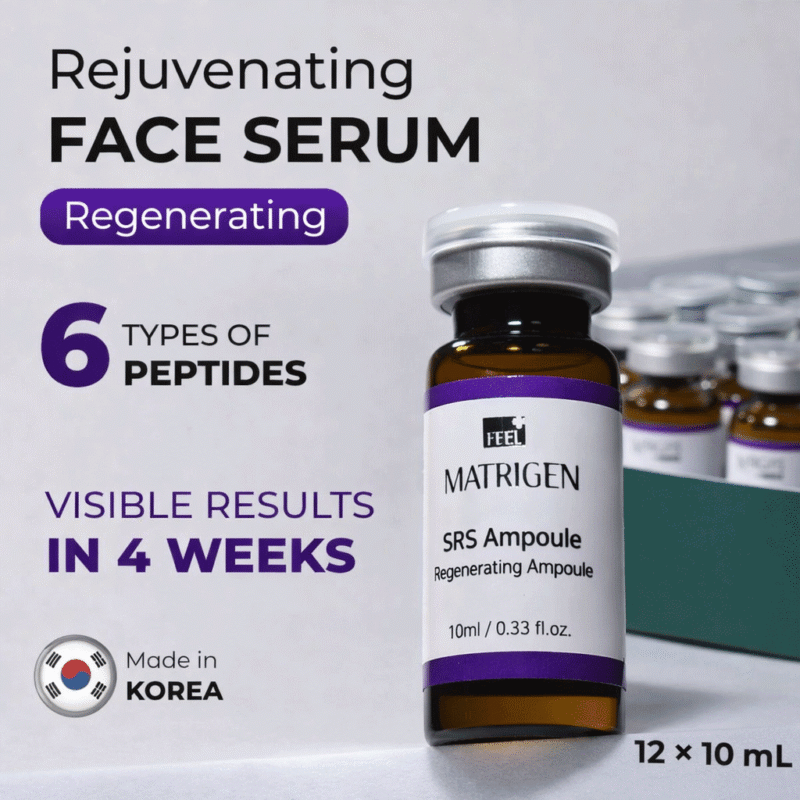 Matrigen SRS Regenerating Ampoule professional skin-rejuvenating ampoule designed to restore vitality, improve elasticity, and deeply hydrate weakened or tired skin during intensive care routines.
