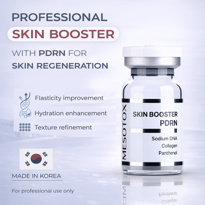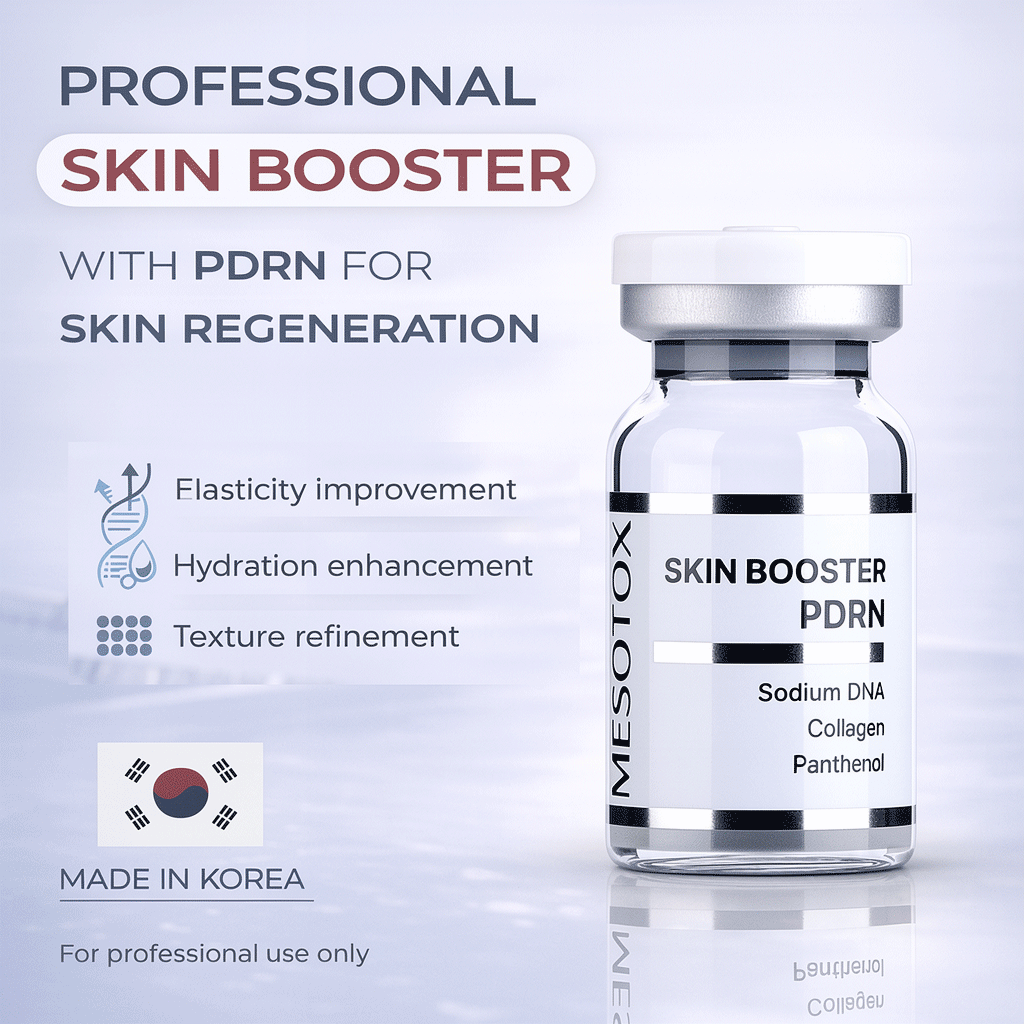 Mesotox Skin Booster PDRN professional mesotherapy and Microneedling serum with PDRN and hyaluronic acid to support skin renewal, improve elasticity, boost hydration, and enhance a smoother, healthier-looking complexion. For professional use only.