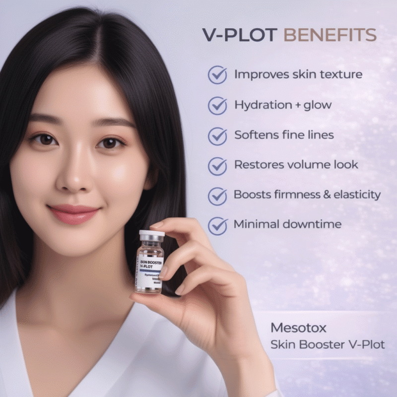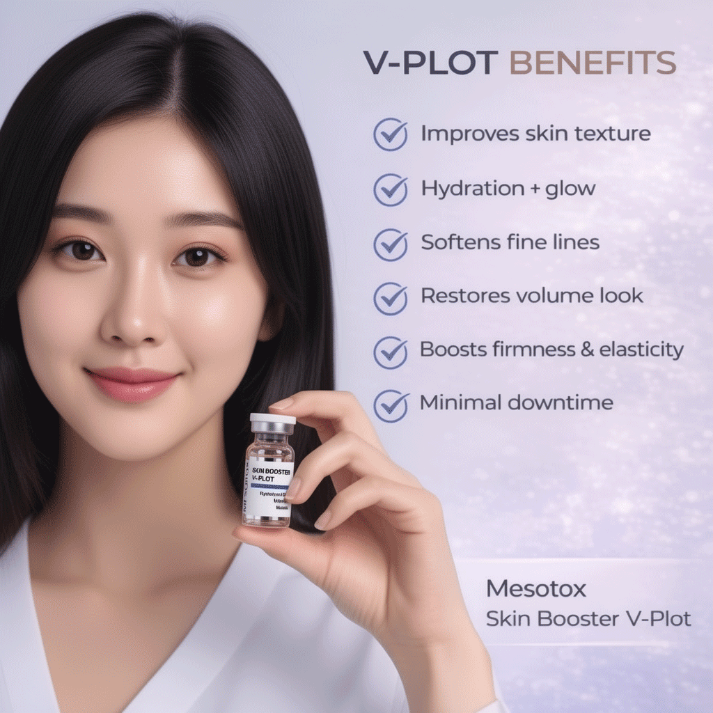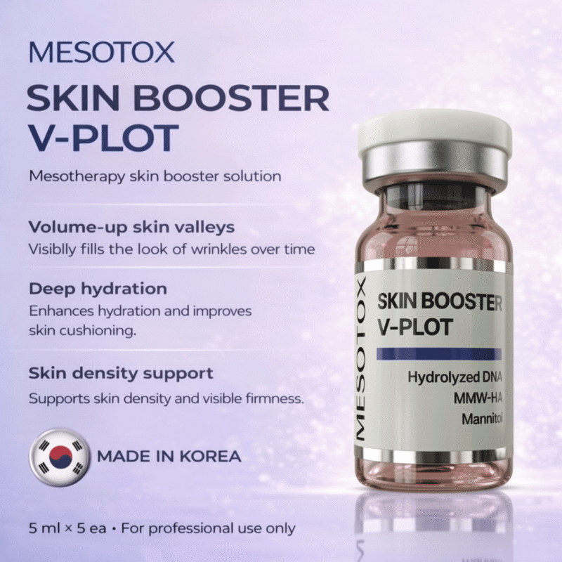 Mesotox Skin Booster V-PLOT is a professional mesotherapy solution formulated with polylactic acid and hyaluronic acid to improve skin firmness, hydration, and elasticity while supporting natural collagen regeneration and long-term skin quality.