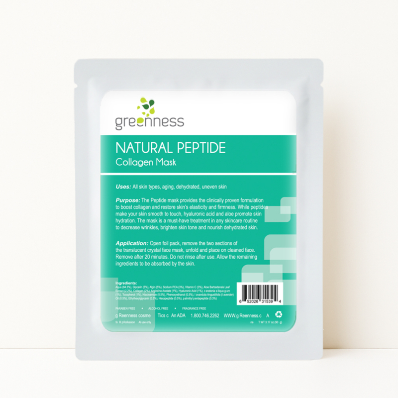 The Peptide mask provides the clinically proven formulation to boost collagen and restore skin’s elasticity and firmness. While peptides make your skin smooth to touch, hyaluronic acid and aloe promote skin hydration. The mask is a must-have treatment in any skincare routine to decrease wrinkles, brighten skin tone and nourish dehydrated skin.