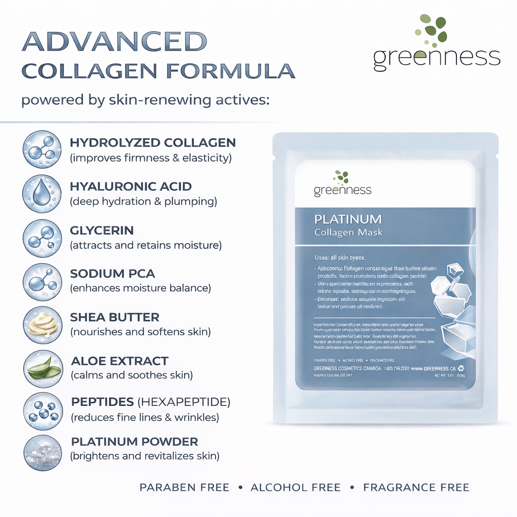 Platinum Collagen Mask professional hydrogel facial mask formulated with collagen, peptides, and platinum to deliver lifting, firming, and anti-aging effects while deeply hydrating and improving skin elasticity for a smoother, more youthful-looking complexion.