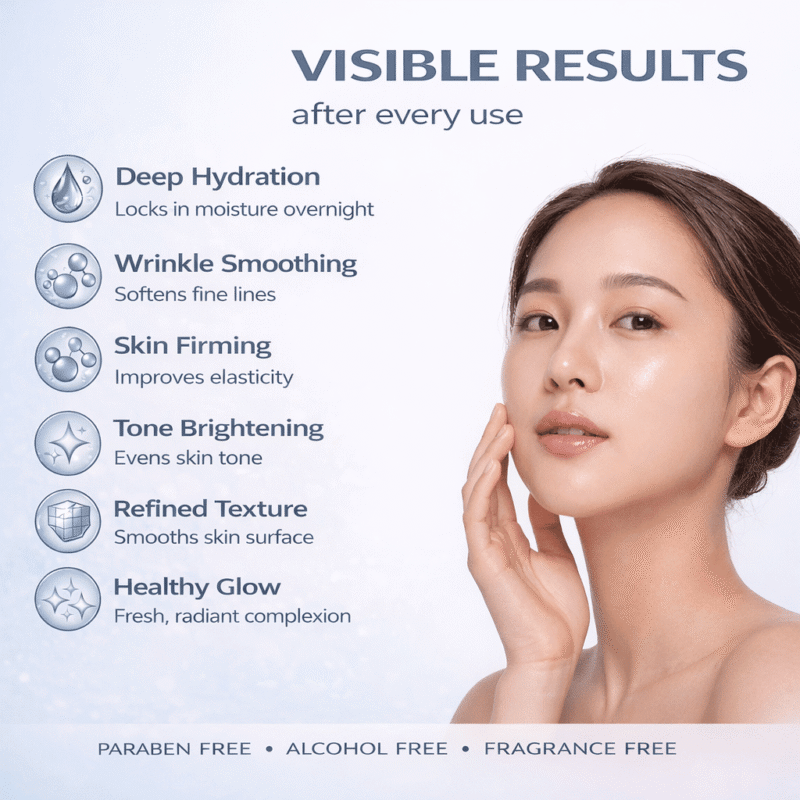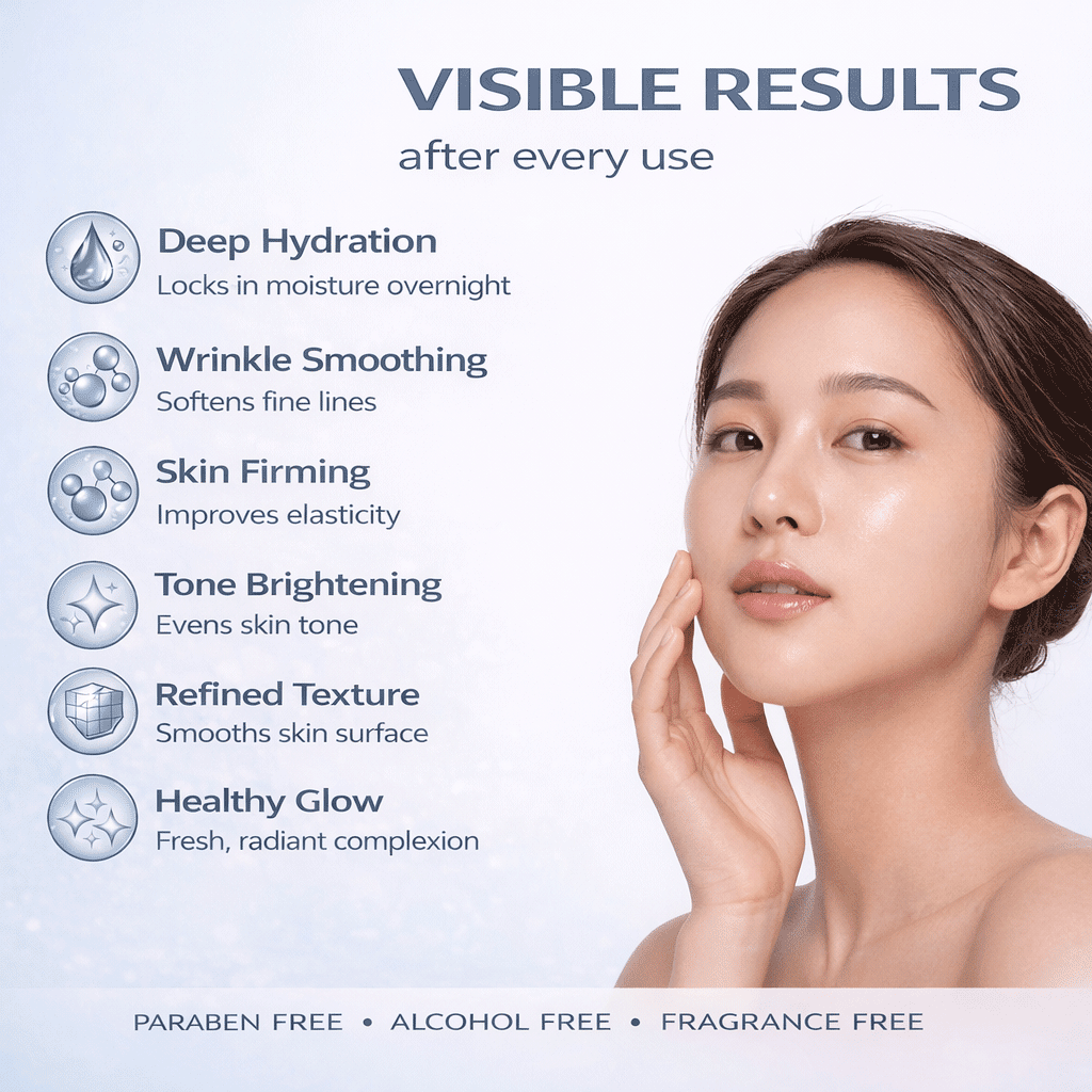 KEY RESULTS: Firmer skin, improved elasticity, reduced wrinkles, and smoother, radiant complexion.