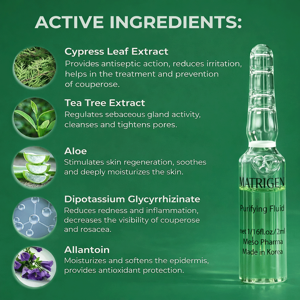Matrigen Microneedling Purifying Fluid – professional microneedling fluid designed to purify congested skin, balance excess oil, and soothe post-treatment sensitivity while supporting a clearer, fresher complexion.