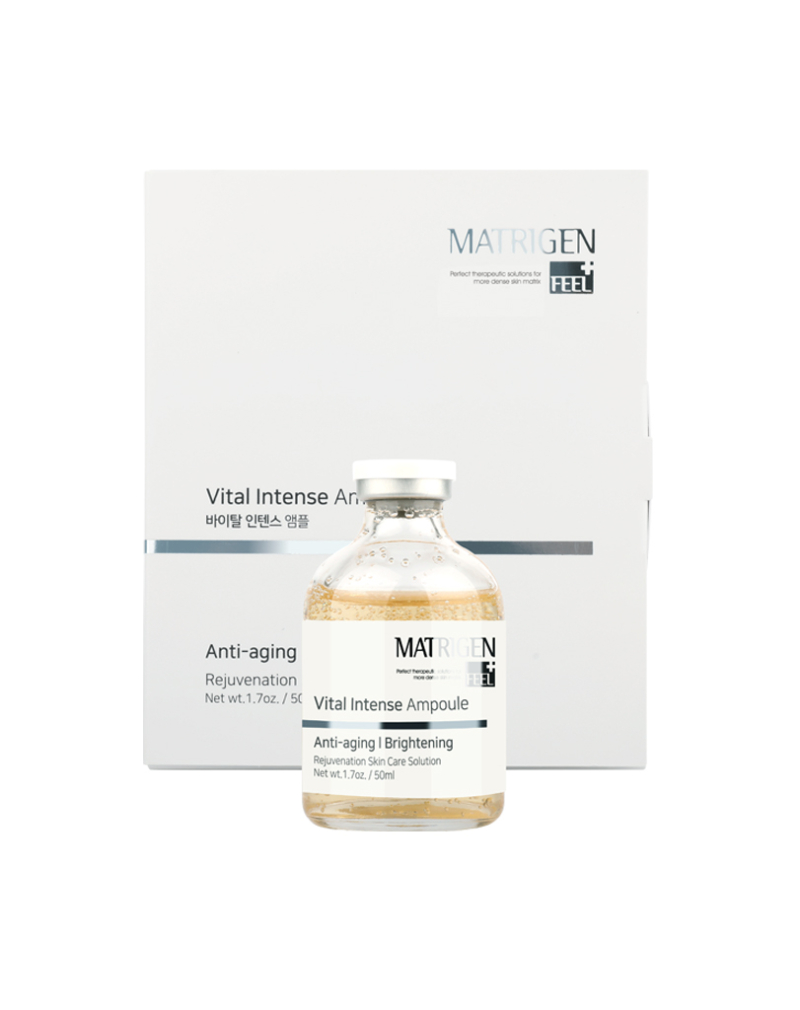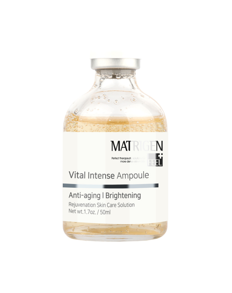 Matrigen E.S.R Vital Intense ampoule contains six peptide complex, PDRN, Stem Cell, EGF, and Adenosin for wrinkles reduction, anti-aging and skin rejuvenation. It is a double functional ampoule for whitening your skin tone and to help vitalizing, firming your skin.